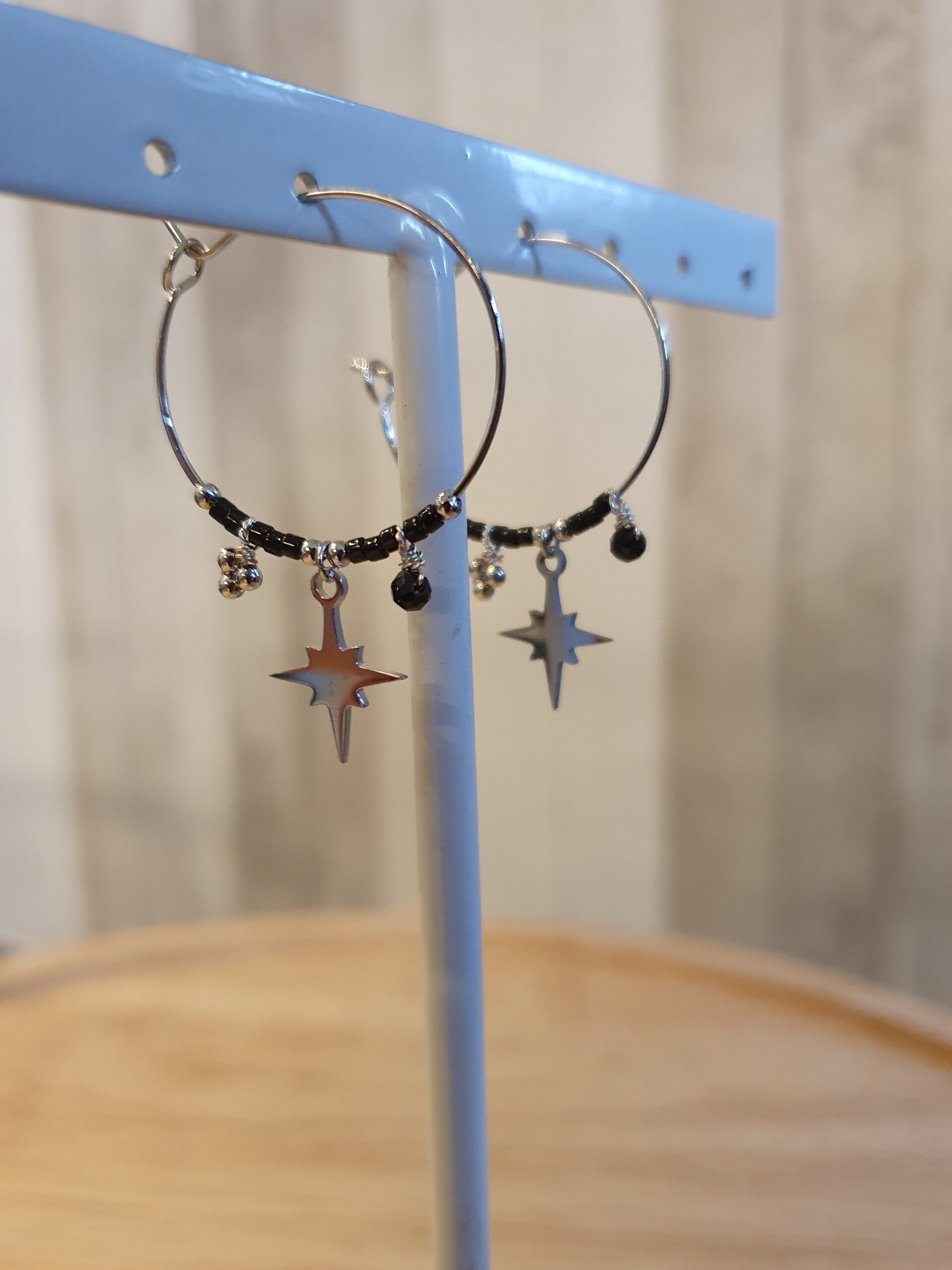 Oorbel cirkel silver star stainless